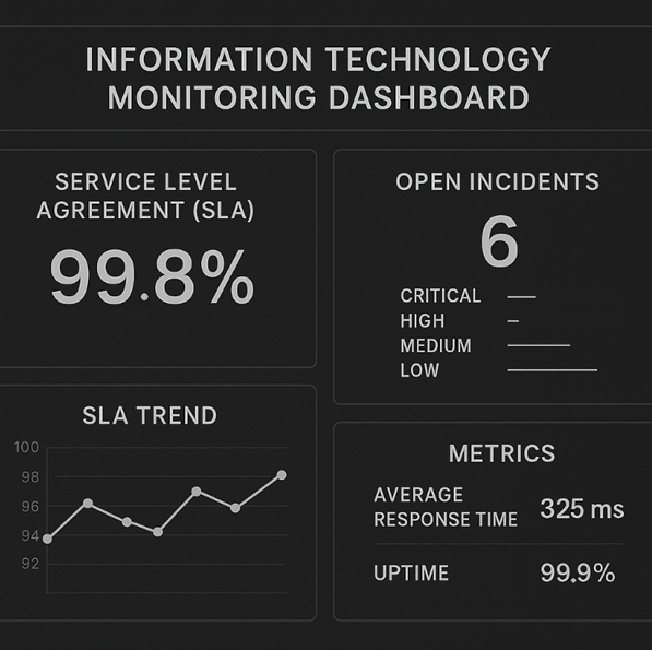 Proactive monitoring, clear SLAs, and a single point of accountability. We coordinate vendors, manage change, and keep you online—with backup and recovery plans tested, not assumed.